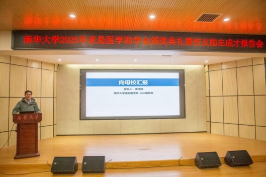 12月27日下午3点,南华大学2025年求是医学助学金颁奖典礼暨校友励志成才报告会在医研楼会议室准时召开。本次会议旨在感恩校友的母校情怀,激励同学们在爱的滋养下努力向前。出席本次会议的有衡阳医学院常务副院长屈顺林,教育发展与校友联络办公室主任李先国,衡阳医学院党委副书记卢清华,基础医学院副院长谢巍,2011届杰出校友唐建明。