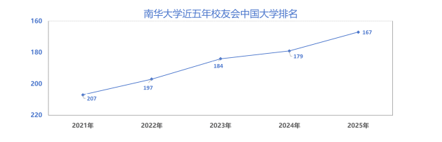 1月6日,全国第三方大学评价机构艾瑞深校友会网(Cuaa.Net)发布《2025校友会中国大学排名》,南华大学位居全国第167名, 实现五连升。