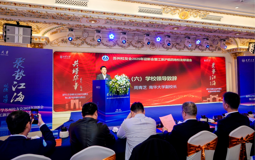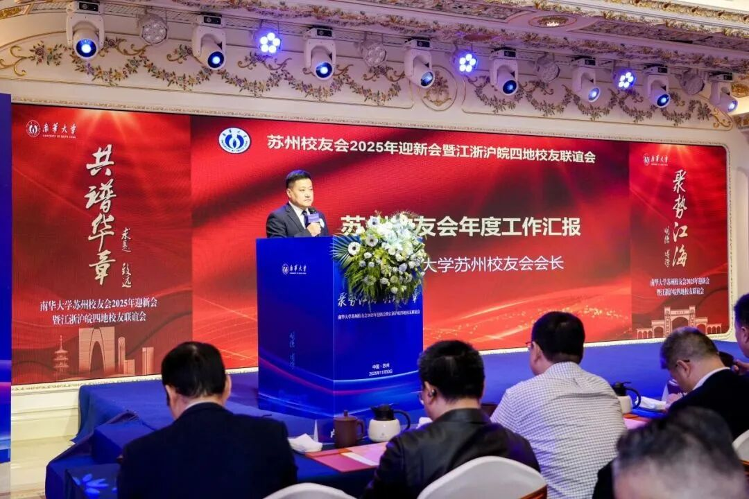 11月29日至30日,南华大学苏州校友会2025年迎新会暨江浙沪皖四地校友联谊会在苏州圆满举行。学校党委委员、副校长周青芝、校友总会会长唐振平、教育发展与校友联络办公室主任李先国、招生就业处副处长徐守龙、知识产权与技术转移中心主任吴小军、机械工程学院党委书记王湘江、电气工程学院副院长谭誉宇、核科学技术学院党委副书记徐婵娟、衡阳医学院党委副书记卢清华等出席活动,与来自江苏、浙江、上海、安徽的四地校友欢聚一堂,共叙情谊、共话发展。