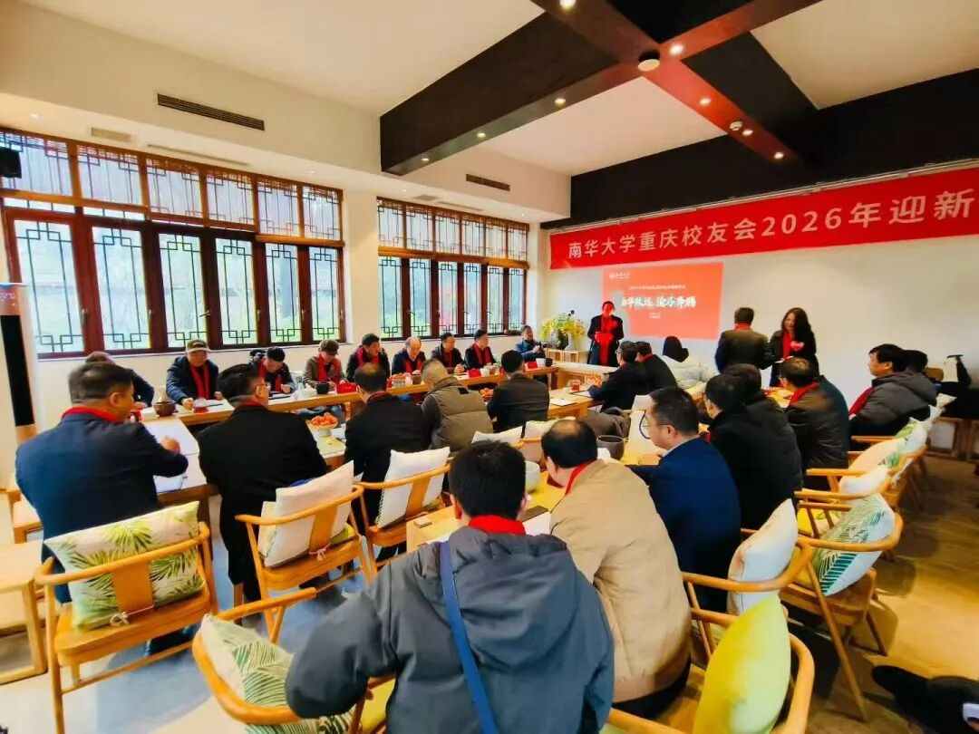 山城叠翠,情谊炽热。2026年1月31日,南华大学重庆校友会以“南华致远,渝马奔腾”为主题的年会在渝圆满举行。南华大学校友总会会长唐振平、深圳校友会原常务副会长兼秘书长谢军、湖北校友会执行会长张海涛等应邀出席,与近百名在渝校友欢聚一堂,畅叙情谊,共谋发展。活动由校友邓红霞、邹小舟主持。