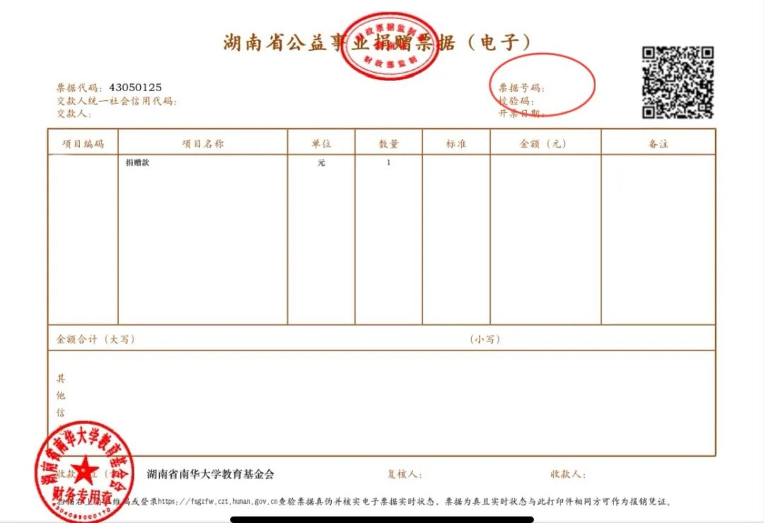受赠单位名称:湖南省南华大学教育基金会